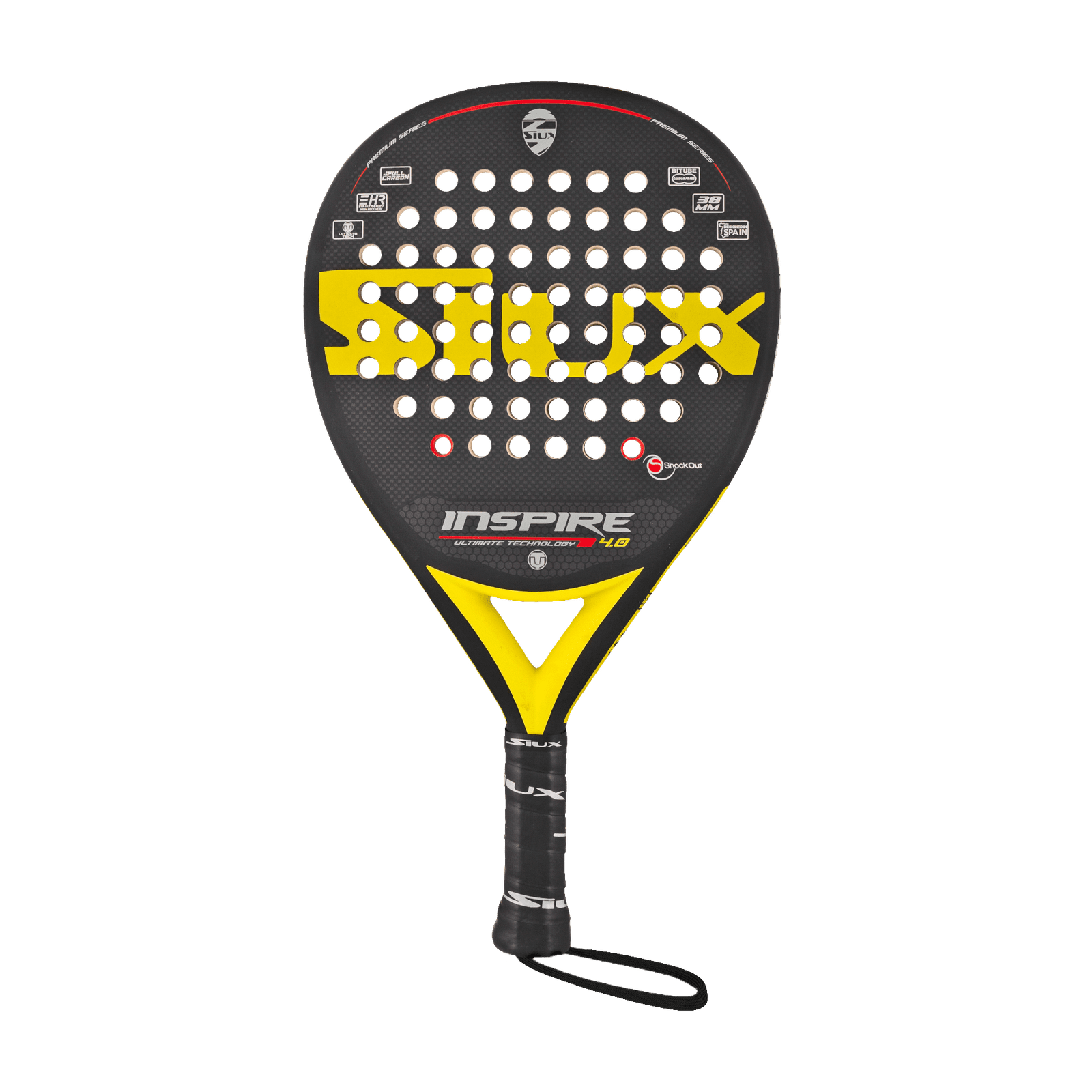 The Siux Inspire 4.0 is designed for players who seek the perfect balance of power, precision, and comfort during gameplay. Expertly designed with a teardrop shape and a raised sweet spot, this racket is perfect for producing powerful, precise shots with consistency. Its construction combines a soft EVA EHR core and fiberglass surface, offering excellent responsiveness, shock absorption, and power transfer. Featuring built-in vibration-reduction technology and an ergonomically crafted ShockOut Dual Pro Grip, the Inspire 4.0 delivers a stable playing experience and long-lasting comfort, even in extended and high-pressure matches.